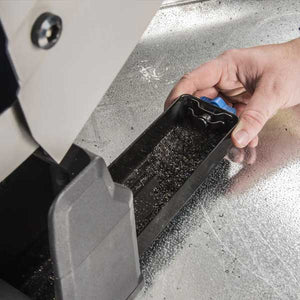 Zbieranie opiłków żelaza w tej łatwej do zlokalizowania tacy pozwala na bezpieczniejsze i czystsze środowisko pracy.