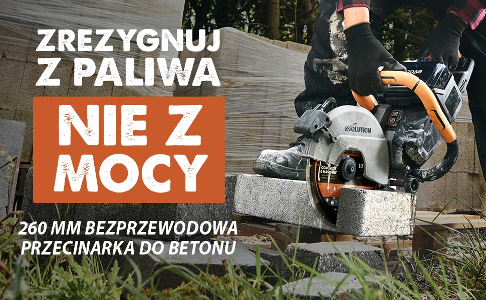 Model R260DCT-Li zostal zaprojektowany z mysla o profesjonalistach. Wyposazony w automatyczny system zraszania wodnego oraz imponujaca glebokosc ciecia do 100 mm, dorownuje wielu przecinarkom przewodowym 12". Kompaktowy, a jednoczesnie mocny, R260DCT-Li oferuje najlepsza w swojej klasie liczbe ciec na jednym ladowaniu, dzieki dedykowanej tarczy diamentowej oraz wydajnemu bezszczotkowemu silnikowi 36V. Przecinarka do betonu Evolution bez problemu radzi sobie z cieciem materialow murarskich, plyt betonowych, metalu i nie tylko – wszystko to przy niezrownowazonym stosunku jakosci do ceny.