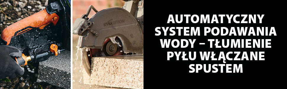 Model ten posiada automatyczny system zraszania wodnego. Zapomnij o recznym otwieraniu i zamykaniu zaworu przed i po kazdym cieciu – zawor automatyczny uruchamia przeplyw wody natychmiast po rozpoczeciu obrotu tarczy i zatrzymuje go po zwolnieniu wlacznika. Dodatkowo, niezalezny zawor regulacji przeplywu pozwala ustawic idealne natezenie raz i korzystac bez potrzeby dalszych regulacji.